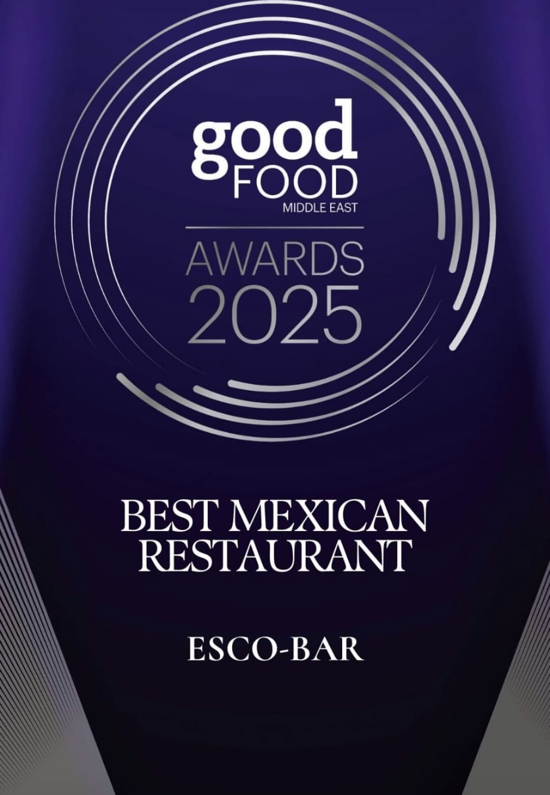 And in 2025, Esco-Bar Coctel Y Cocina reached a defining milestone. Esco-Bar Dubai was honored at the Good Food Middle East Awards 2025, winning the title of Best Mexican Restaurant in Dubai—one of the most respected recognitions in the region’s culinary industry. The award reflects not only culinary excellence, but consistency, atmosphere, service and brand identity in one of the world’s most competitive dining landscapes.