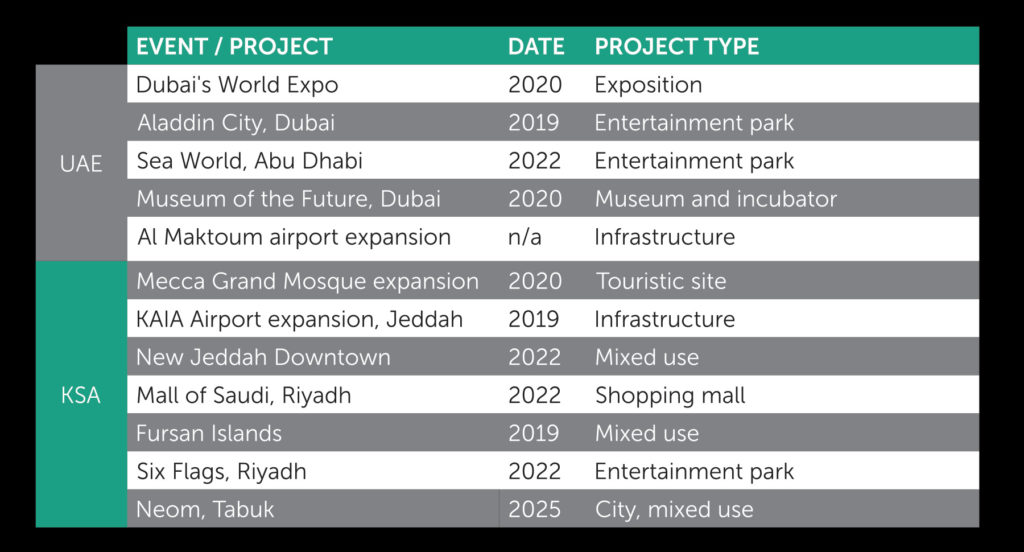 Gulf countries have a busy schedule in the coming years, gearing up for major events and development projects. Dubai’s World Expo 2020 and Qatar’s FIFA World Cup 2022, among others, are expected to attract thousands of visitors from all over the world. The Meetings, Incentives, Conferences and Exhibitions (MICE) industry is also set for robust growth, with Dubai remaining one of the world’s top destinations. Religious tourism is also a major activity, which is prompting Saudi Arabia to develop its infrastructure, especially its transportation projects.