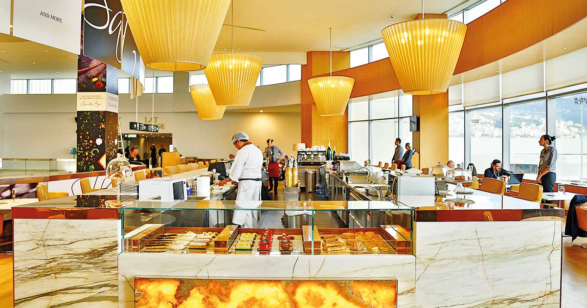 SALT: Gourmet offering such as seafood (Caviar, Heart of Salmon and Sushi) gourmet menu ( Foie Gras, Vitello Tonnato , wild Cod burgers and beef Angus burgers), Salads, Sandwiches and Specialty Pastries designed by master chef Charles Azar and executed by our chefs at the airport.