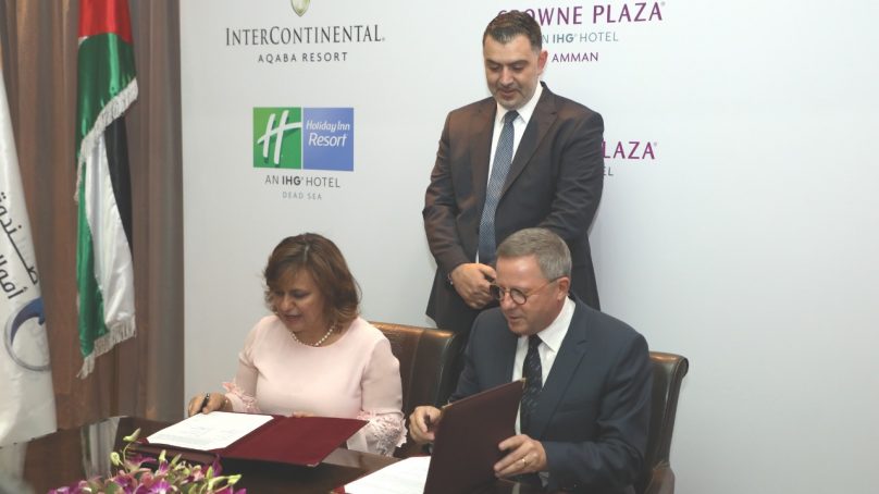 The agreements were signed by Kholoud Saqqaf, SSIF CEO and Vice Chairperson of the Investment Board and Pascal Gauvin, IHG Chief Operating Officer for India, Middle East and Africa. The deal also announced the continued operation of the 3 prominent properties beside those owned by the Fund under IHG management namely, Crowne Plaza Petra and InterContinental Aqaba. The ceremony was attended by Nidal Batayneh Minister of Labor, Dr. Hazem Al- Rahahleh Social Security Corporation Director General and Eng. Haitham Majali Chairman of the National Corporation for Tourism Development.