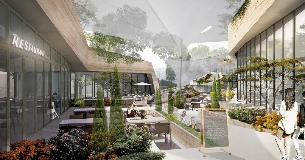In relation to access and the architecture behind it, Tarek Zeidan and Dara McPhee Architects and Karim Bacha Architects were the two firms chosen to execute architectural design. To ensure maximum exposure, they designed the cluster to stretch for a 200-meter distance across Beit Mery’s main highway offering brands great exposure. This creates a continuous series of landscaped terraces and a seamless connection between the indoor and outdoor spaces. Earthy colors and materials suggest a continuity with nature and the village around the cluster. The outdoor spaces blur the boundaries between the public and the private, catering for the community and providing an enjoyable place to visit for people coming from all four directions. Furthermore, the location offers people unrestricted access from various entry points. This architecture lends the cluster more fluidity and deconstructs the notion of interior and exterior by breaking down the seemingly invisible physical boundaries. In terms of leveling, the cluster will be more naturally positioned by following the natural elevation of the location it covers allowing better and more practical access to all outlets.